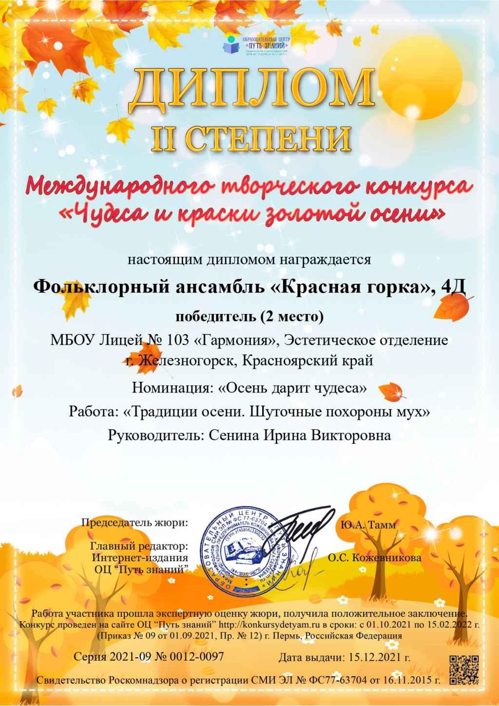 Совсем недавно пришли результаты международного творческого конкурса "Чудеса и краски золотой осени".