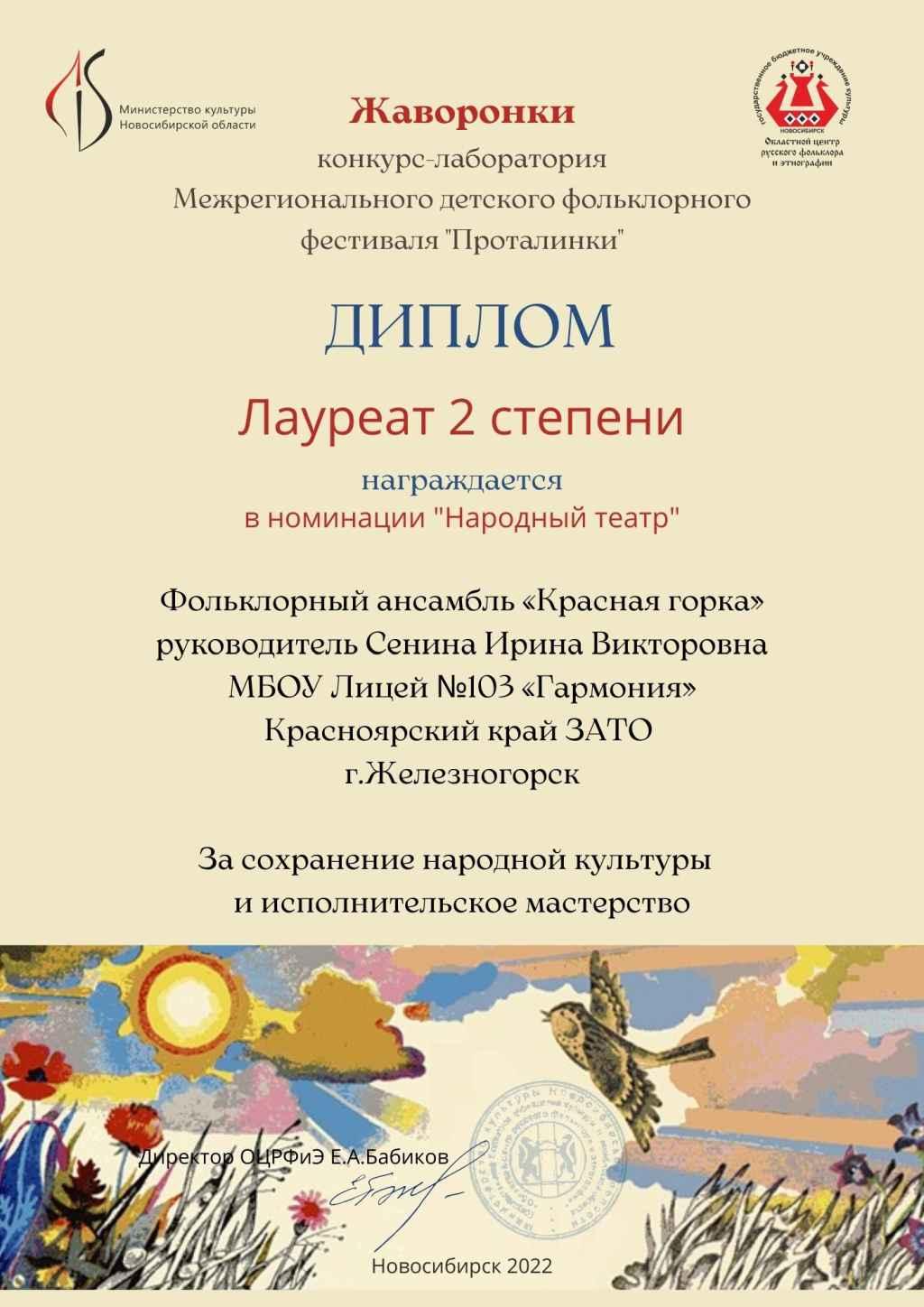 31.03.2022В дни весенних каникул фольклорный ансамбль «Красная Горка» с успехом выступил на XXX Межрегиональном детском фольклорном фестивале «Проталинки», в котором приняли участие фольклорные коллективы Сибири и Урала.