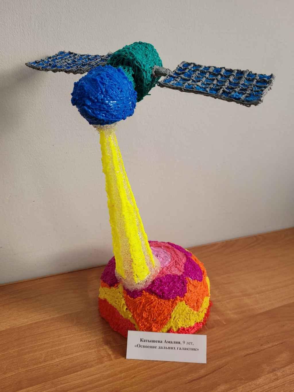 • В номинации "Космический сувенир" (7-10 лет) 1 место завоевала Катышева Амалия (3Д) с работой "Исследование космических миров" (руководитель Ломакина Г.Н.)