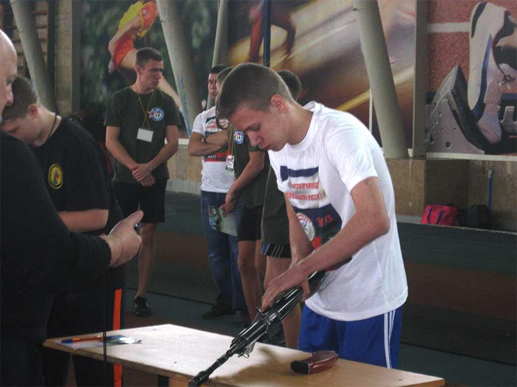 Ребята состязались в беге на 60 метров, разборе и сборе автоматов, подтягивании на перекладине, прыжках со скакалкой, стрельбе и выполнении интеллектуальных тестов.