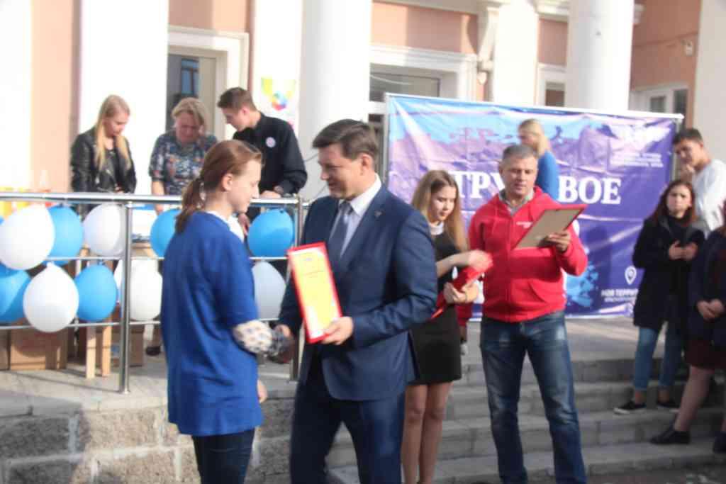 А награждение происходило на площадке перед зданием Молодежного центра. Перед этим торжественным действом к присутствующим обратился глава ЗАТО г. Железногорск Вадим Викторович Медведев. А затем заслуженные награды получили руководители ТОС, командиры и бойцы. В Лицее №103 это Елена Анатольевна Чумичева, Алексей Дмитриевич Савочкин и ученица 10 класса Настя Носкова.