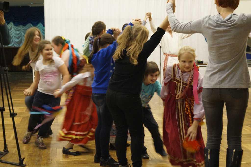 Ребята наглядно продемонстрировали искусство скоморохов: исполнили игровую песню Красноярского края «Скоморох идет по улице», показали сценку про скоморохов собственного сочинения и поиграли с участниками в народные подвижные игры, такие, как «Селезень утку загонял». «Гуси – гуси», «Золотые ворота».
