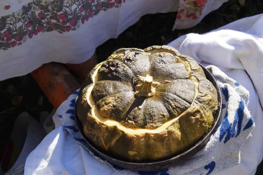 На празднике пели старинные осенние песни, водили осенние хороводы и угощались кашами из разных круп. По традиции, был сооружен обрядовый костёр - с колесом наверху - в благодарность уходящему солнцу!
