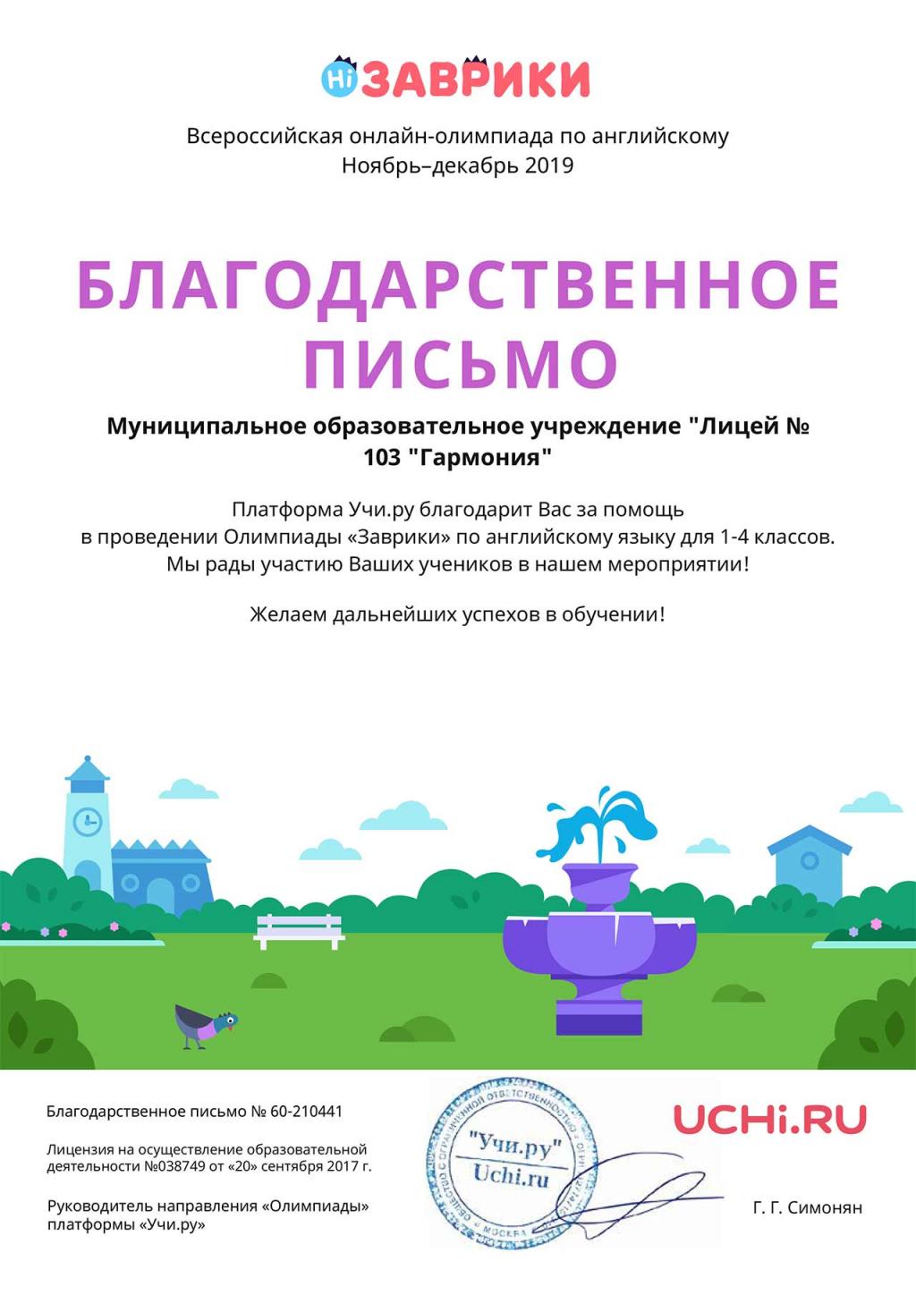 © Муниципальное бюджетное общеобразовательное учреждение Лицей №103 «Гармония», 2005-2026 г