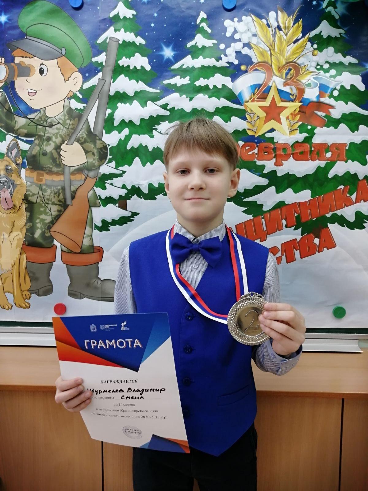 7. Наш ученик 4 "М" класса Владимир Шурмелев в составе команды "Смена" занял II место в первенстве Красноярского края по хоккею!