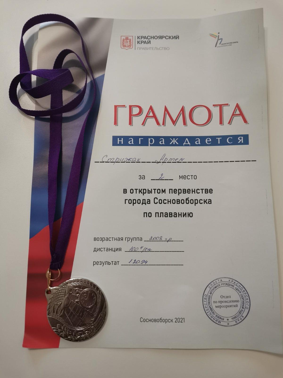 • Артем Стрижак (7 "А", Сорокина Ю.В.) участвовал в открытых соревнованиях по плаванию в городе Сосновоборске и занял II место;