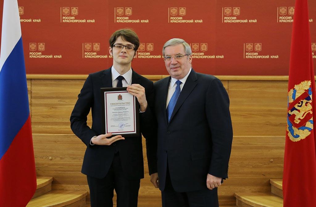 В Красноярском крае учреждены стипендии имени известных красноярцев - академиков Леонида Киренского и Михаила Решетнева, писателя Виктора Астафьева, художника Василия Сурикова, прославленного борца Ивана Ярыгина, первого губернатора Енисейской губернии Александра Степанова и доктора исторических наук Василия Увачана.