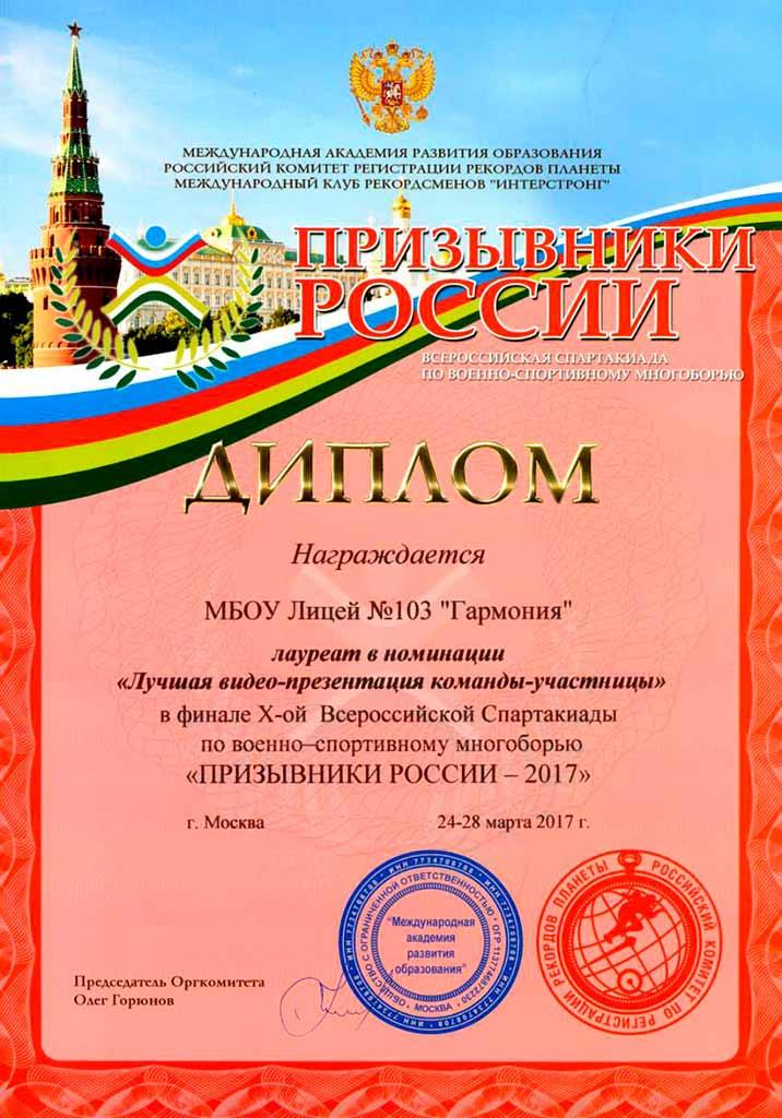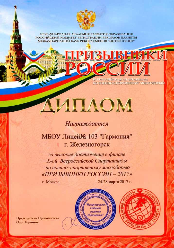 Лицей лауреат спартакиады «Призывники России - 2017»