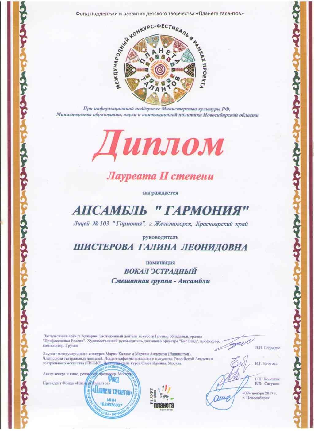 в рамках проекта "Планета талантов", который проходил в г.Новосибирске с дипломом IIстепени