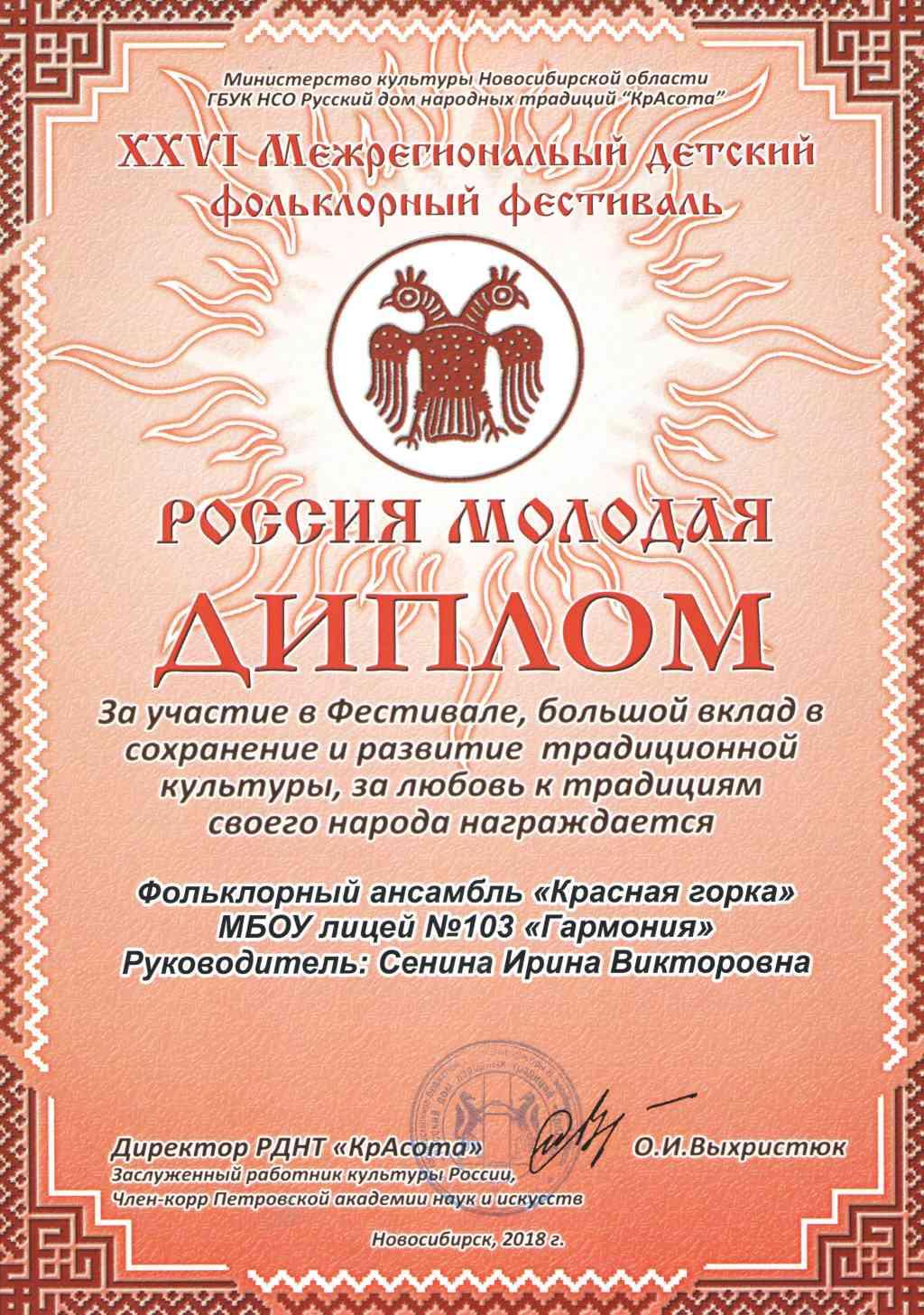 Межрегиональном детском фольклорном фестивале «Россия Молодая», в котором приняли участие фольклорные коллективы Сибири  и Урала.