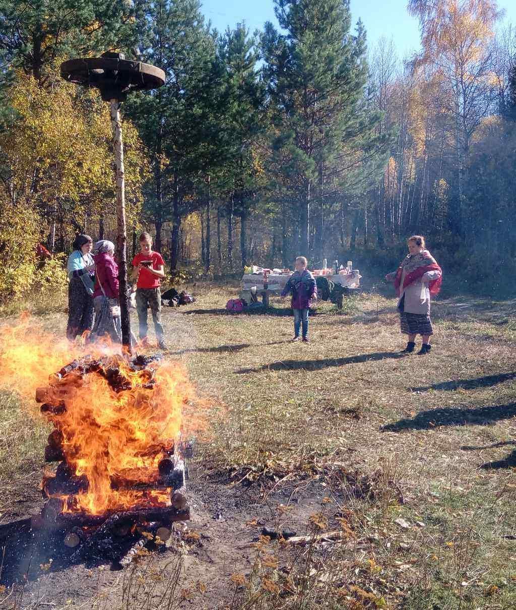 На празднике пели старинные осенние песни, водили осенние хороводы и угощались кашами из разных круп. По традиции, был сооружен обрядовый костёр - с колесом наверху - в благодарность уходящему солнцу!