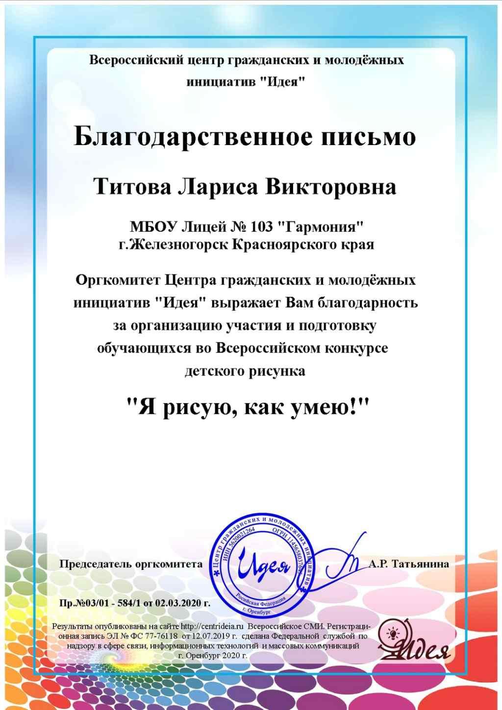 04.03.2020Всероссийский конкурс детского рисунка