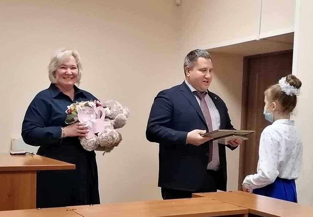 14 января председатель Железногорского городского суда поздравил ученицу 4Л класса Еремееву Милану и
